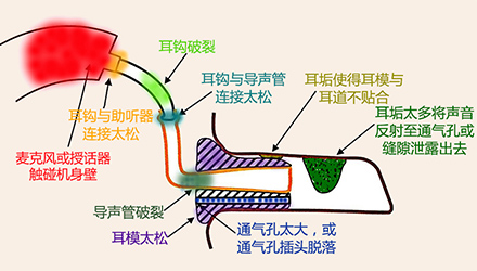 <span style="font-size:16px;"> 嘯叫,一直是引起助聽器使用者不滿的一大原因,也是驗配師在助聽器調試時最為棘手的難題之一。</span></p><p><span style="font-size:16px;"> 通常,嘯叫分內部嘯叫和外部嘯叫。內部嘯叫常由內部零件故障引起,而外部嘯叫則是與助聽器外殼或耳模,助聽器調試等有關。</span></p><p style="text-align: center;"><span style="font-size:16px;"><img src="/upfiles/201810100140556872.jpg" alt="" /><br /></span></p><p><span style="font-size:16px;"> 我們常常說的外部嘯叫是在聲音被麥克風拾取、放大器放大、授話器轉換后,又從各種縫隙(如外殼與耳道的縫隙、通氣孔)中“跑”出來,又“跑”進去,如此反復多次,使得聲音越來越大,產生“吱吱吱”的惱人嘯叫。</span></p><p><span style="font-size:16px;"> 以助聽器的角度來看,shou話器把聲音授給耳朵聽,當用“授”,即授話器。</span></p><p><span style="font-size:16px;"> 接下來將分別針對定制式(ITE/ITC/CIC)和耳背式(BTE)助聽器的嘯叫問題,跟著產生嘯叫的路徑,一一“攻破”嘯叫難題。注意,這里不說助聽器調試,只尋嘯叫路徑,并“堵死”嘯叫“通路”,讓進入助聽器的聲音“不走回頭路”。</span></p><p><span style="font-size:16px;"> 1、ITE/ITC/CIC助聽器</span></p><p><span style="font-size:16px;"> 先來看看ITE/ITC/CIC助聽器可能發生嘯叫的路徑。</span></p><p><span style="font-size:16px;"> 圖1里是一個定制式助聽器佩戴于外耳道內的示意圖,各種顏色的字和相應顏色的標記展示了發生嘯叫的各種情況。</span></p><center><span style="font-size:16px;"><img alt="" src="/upfiles/201810100142273990.png" width="440" height="250" /></span></center><p></p><p style="text-align: center;"><span style="font-size:16px;">圖1:ITE/ITC/CIC助聽器發生嘯叫的路徑一覽</span></p><p style="text-align: left;"><span style="font-size:16px;"> 例如,紅色表示“麥克風管子脫落”,這屬于助聽器內部零件脫落、故障,為內部嘯叫。</span></p><p><span style="font-size:16px;"> 橙色表示“外殼佩戴太松”,這屬于外殼不密封的聲音泄露,為外部嘯叫。</span></p><p><span style="font-size:16px;"> 那如何檢查出是這些原因,并對問題進行相應處理呢?請對照表1中的“診斷依據”和“處理方法”查看。</span></p><center><span style="font-size:16px;"><img alt="" src="/upfiles/201810100142337254.png" width="520" height="250" /></span></center><p></p><p style="text-align: center;"><span style="font-size:16px;">表1:ITE/ITC/CIC助聽器產生嘯叫的可能原因及對應的診斷依據、處理方法</span></p><p><span style="font-size:16px;"> 例如,當發現“手指堵住麥克風入聲口后仍有嘯叫”,可推斷原因是“麥克風管子從麥克風或外殼上脫落”或“麥克風或授話器移動,觸碰到外殼或其他傳感器”,這時的處理方法是“送廠維修”。</span></p><p><span style="font-size:16px;"> 2、BTE助聽器</span></p><p><span style="font-size:16px;"> 學會了看ITE/ITC/CIC助聽器的一圖一表,再來看看BTE助聽器的嘯叫路徑圖(圖2),以及表2中羅列的可能原因、診斷依據和處理方法,相信看起來更加輕松、直觀、一目了然。</span></p><center><span style="font-size:16px;"><img alt="" src="/upfiles/201810100142383483.png" width="440" height="250" /></span></center><p></p><p style="text-align: center;"><span style="font-size:16px;">圖2:BTE助聽器發生嘯叫的路徑一覽</span></p><center><span style="font-size:16px;"><img alt="" src="/upfiles/201810100142449945.png" width="462" height="273" /></span></center><p></p><p style="text-align: center;"><span style="font-size:16px;">表2:BTE助聽器產生嘯叫的可能原因及對應的診斷依據、處理方法</span></p><p><span style="font-size:16px;"> 更多詳情請登錄www.hlxcw.com。</span></p>" />